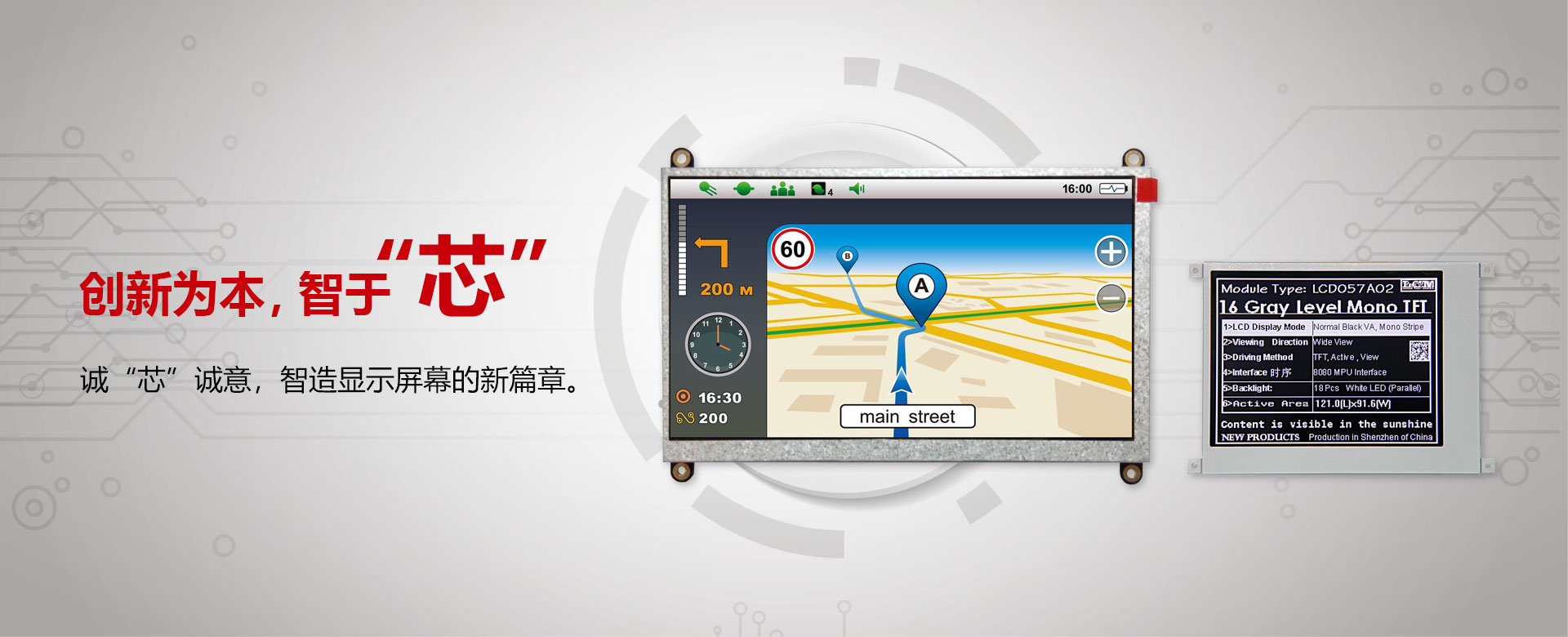以人為本,以質(zhì)為綱,以客為尊是我們至今秉承的經(jīng)營(yíng)理念。公司擁有一支經(jīng)驗(yàn)豐富的研發(fā)、銷售和生產(chǎn)管理人員,并具備成熟的生產(chǎn)工藝和先進(jìn)的智能化進(jìn)口專業(yè)生產(chǎn)設(shè)備。我們承接各種TN、HTN、STN、FSTN、TAB、COG、CSTN、TFT液晶屏的開發(fā)設(shè)計(jì)、開模定制、單片機(jī)開發(fā)及LCD的來料加工。